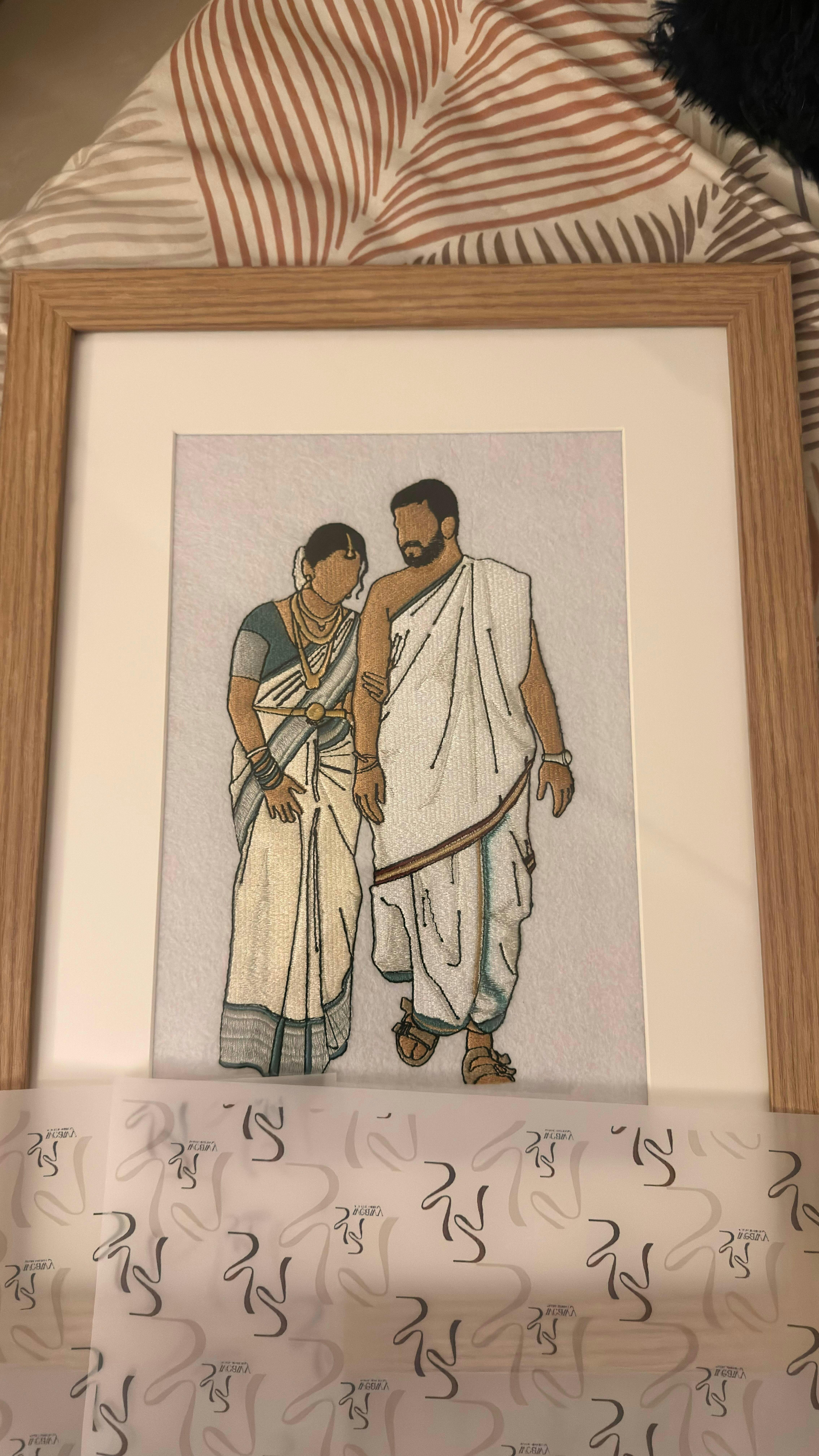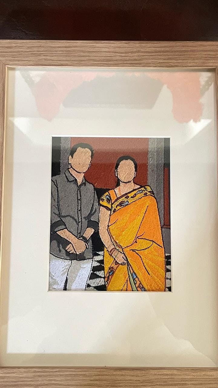 Absolutely loved it! The embroidered couple portrait looks beautiful and premium. The detailing is amazing and the frame just completes it. Perfect gift.....worth every penny.